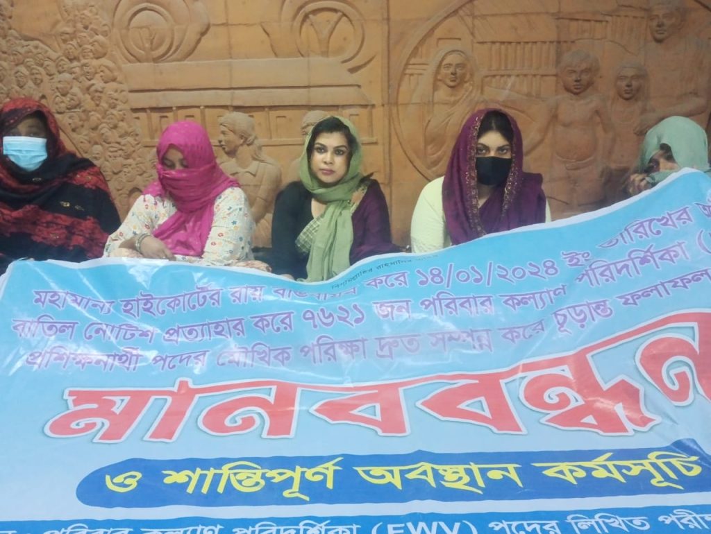 এর মাঝে মৌখিক পরীক্ষার পর দীর্ঘ সময় অতিক্রান্ত হয়ে যাওয়ার পরেও স্বাস্থ্য অধিদপ্তরের সকল পদের ফলাফল প্রকাশ করা হয়েছে কিন্তু পরিবার কল্যান পরিদর্শিকার চূড়ান্ত ফলাফল প্রকাশ করা হয়নি। যার পরিপ্রেক্ষিতে ভুক্তভোগীরা ০১ অক্টোবর ২০২৩ সাল থেকে ২৮ নভেম্বর ২০২৩ পর্যন্ত মোট ৫ বার চূড়ান্ত ফলাফলের দাবিতে মানববন্ধন করে আসছেন এবং কয়েকদিন যাবত সারারাত পরিবার কল্যাণ অধিদপ্তরের মূল ফটকের সামনেই শান্তিপূর্ণ অবস্থান কর্মসূচি চলমান রেখেছেন। দাবি আদায় না পর্যন্ত এই কর্মসূচি চলমান থাকবে বলেও জানিয়েছেন তারা।