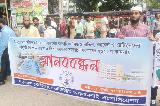 আজ বুধবার (২ জুলাই) বিকেলে জাতীয় প্রেসক্লাবের সামনে এক মানববন্ধনে নাবিকদের পক্ষ থেকে এই খাতের সুরক্ষায় পাঁচ দফা দাবি পেশ করা হয়।