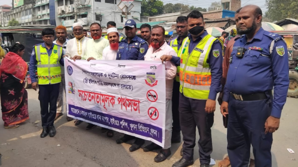 মহাসড়কে শৃঙ্খলা ফেরাতে পুলিশের জনসচেতনতামূলক পথসভা