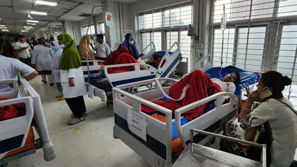 উত্তরায় বিমানবাহিনীর প্রশিক্ষণ বিমান বিধ্বস্তের ঘটনায় দগ্ধদের এই মুহূর্তে বিদেশে নেওয়ার কোনো পরিকল্পনা নেই বলে জানিয়েছেন জাতীয় বার্ন ও প্লাস্টিক সার্জারি ইনস্টিটিউটের ভারপ্রাপ্ত পরিচালক অধ্যাপক ডা. মো. নাসির উদ্দিন। বুধবার