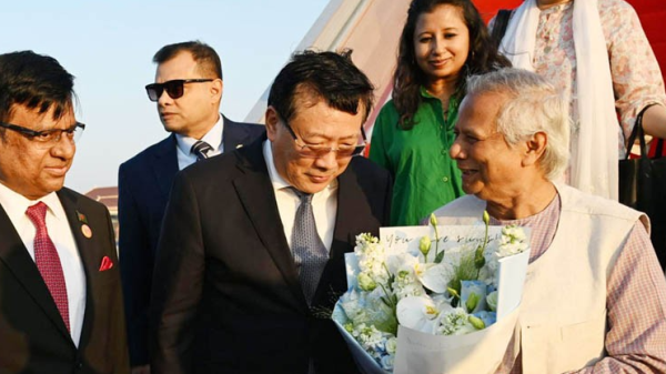 চার দিনের সফরে চীনে পৌঁছেছেন অন্তর্বর্তী সরকারের প্রধান উপদেষ্টা ড. মুহাম্মদ ইউনূস। কিয়ংহাই বোয়াও বিমানবন্দরে চীনে নিযুক্ত বাংলাদেশি রাষ্ট্রদূত নাজমুল ইসলাম এবং হাইনান প্রদেশের ভাইস গভর্নর তাকে স্বাগত জানান। বুধবার