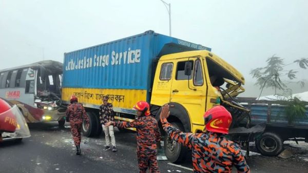 মুন্সীগঞ্জের কামারখোলায় ঢাকা-মাওয়া এক্সপ্রেসওয়েতে ঘন কুয়াশার কারণে পাঁচটি যানবাহনের একটির পিছনে আরেকটির সংঘর্ষের ঘটনা ঘটেছে। এতে অন্তত ২০ জন আহত হয়েছেন। আজ সোমবার সকাল পৌনে ৮টার দিকে এ দুর্ঘটনা ঘটে।