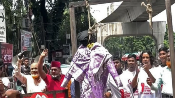 বিডিআর হত্যা, শাপলা গণহত্যা ও চব্বিশের গণহত্যার মাস্টারমাইন্ড স্বৈরাচার শেখ হাসিনার প্রতীকী ফাঁসি সম্পন্ন করেছে ছাত্র-জনতা। মঙ্গলবার (৫ আগস্ট) সকাল সাড়ে ১০টায় ‘জাগ্রত জুলাই ও জুলাই ঐক্যের’ আয়োজনে জাতীয় প্রেসক্লাবের