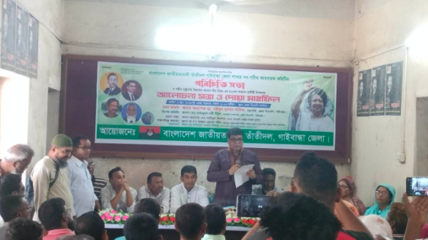 বাংলাদেশ জাতীয়তাবাদী তাতীদল গাইবান্ধা জেলা শাখার নবগঠিত আহবায়ক কমিটির পরিচিতি সভা ও শহীদ জিয়াউর রহমানের ৪২তম শাহাদত বার্ষিকী পালন উপলক্ষে আজ (শুক্রবার) আলোচনা সভা ও দোয়া মাহফিল অনুষ্ঠিত হয়। জেলা