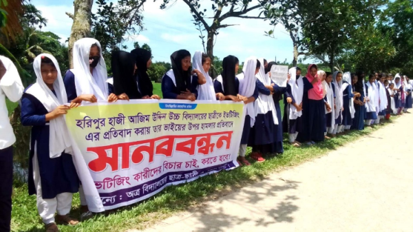 ময়মনসিংহ জেলা প্রতিনিধি: ময়মনসিংহের নান্দাইলে ইভটিজিং প্রতিরোধে এবং শিক্ষার্থীদের নিরাপত্তা নিশ্চিত করার দাবিতে মানববন্ধন করেছে উপজেলার হরিপুর আজিম উদ্দিন উচ্চ বিদ্যালয়ের শিক্ষার্থী ও এলাকাবাসী। রোববার (১৭ আগস্ট) দুপুর সাড়ে ১২টার