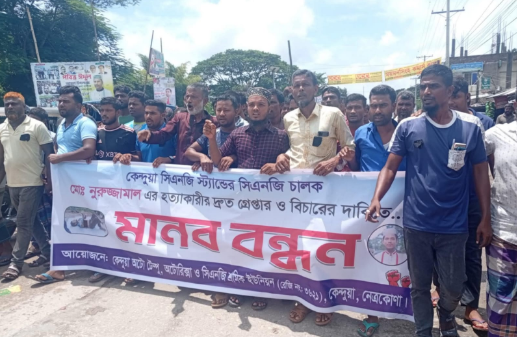 নেত্রকোণার কেন্দুয়া উপজেলায় বুধবার (২০ আগস্ট) সকালে সিএনজি চালক নুরুজ্জামাল (৩৫)-এর লাশ উদ্ধারের পর তার হত্যাকাণ্ডের বিচার দাবিতে বিক্ষোভ ও মানববন্ধন করেছে স্থানীয় সিএনজি শ্রমিক ইউনিয়ন। লাশ উদ্ধার ও ঘটনার