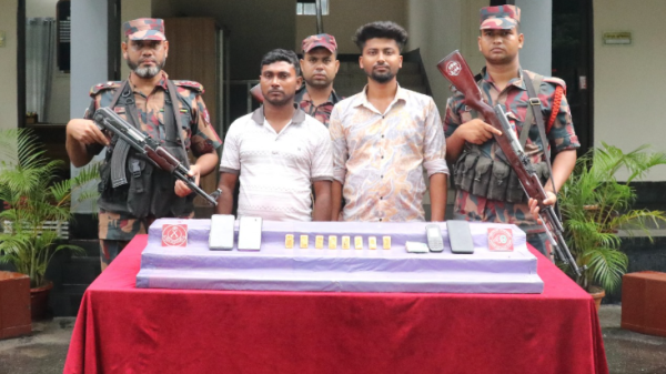 যশোরের তারাগঞ্জ বাসস্ট্যান্ড এলাকা হতে প্রায় ১ কেজি ওজনের (৯৭০ গ্রাম) ০৮ টি স্বর্ণের বারসহ ০২ জন আসামী আটক করেছে বিজিবি। মঙ্গলবার ১৫ জুলাই ২০২৫ তারিখ ০৪:৪৫ ঘটিকায় যশোর ব্যাটালিয়ন