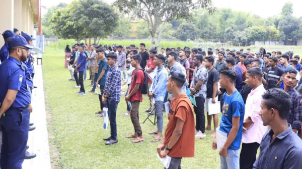আজ শনিবার সকাল ৮টা থেকে মৌলভীবাজার জেলা পুলিশ লাইন্স মাঠে শুরু হয়েছে ট্রেইনি রিক্রুট কনস্টেবল (টিআরসি) পদে নিয়োগ কার্যক্রম। অনলাইনে আবেদনকারী প্রার্থীদের শারীরিক মাপ ও কাগজপত্র যাচাইয়ের মাধ্যমে শুরু হয়