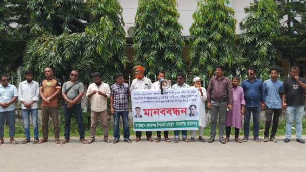 সাংবাদিক তুহিন হত্যার প্রতিবাদে মাদারগঞ্জে মানববন্ধন ও বিক্ষোভ